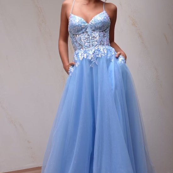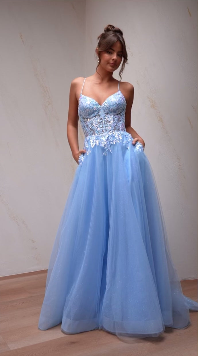 The sweetheart V-neckline highlights exposed bust cups for subtle structure, while spaghetti straps add a refined touch and lead into a lace-up back for an adjustable and elegant finish. The Charmaine Formal Dress perfectly balances glamour, romance, and sophistication.