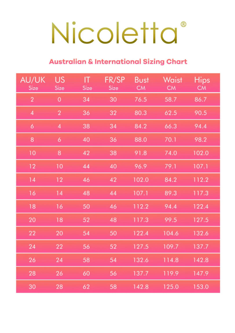 Please Note: Additional costs may apply to sizes 2-4 & 20+
