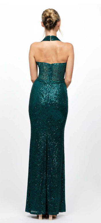 - Sequin halter gown